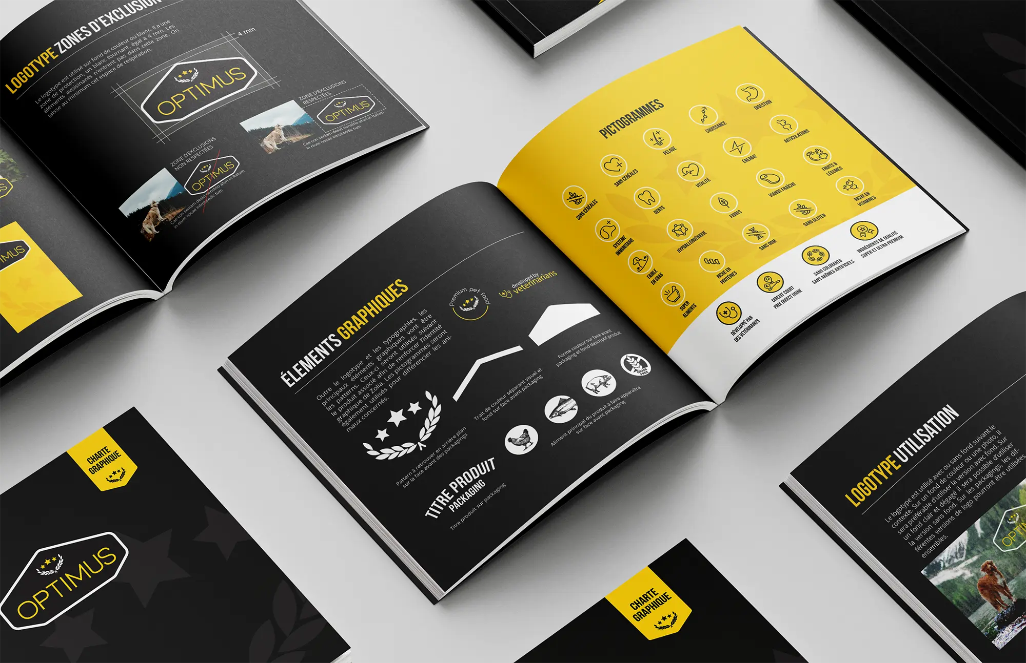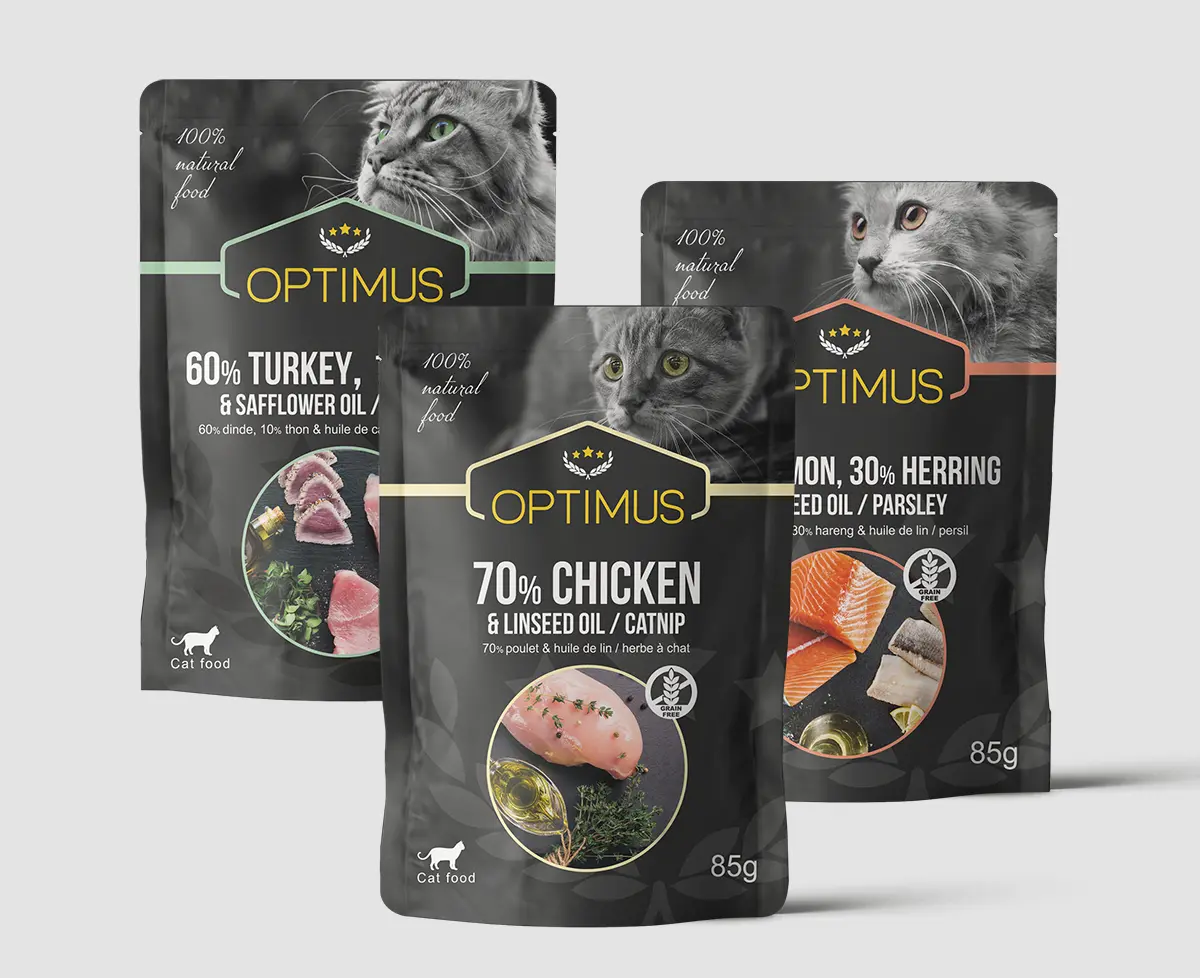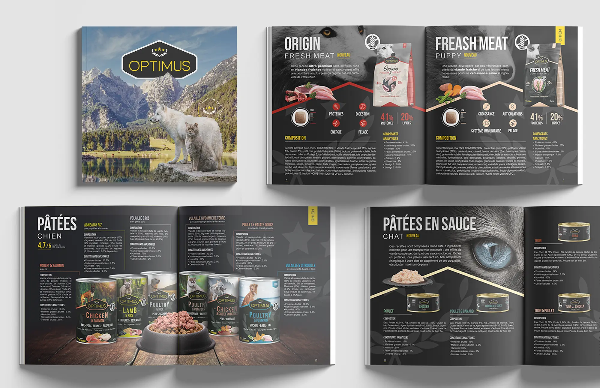 Dans le cadre de mon acivité salariée à Zoomalia l’opportunité m’a été donnée de refaire entièrtement le branding de la marque Optimus en restant corrélé à la version pécédente. C’est une marque appartenant à la société Zoomalia, spécialsée dans l’aimentation des chiens et chats. Tous les packagings de la marque ont été retravaillés en plus de nouvelles références s’ajoutant au catalogue. Gestion de tout le procéssus de création des packagings en relation directe avec l’imprimeur. En plus des packagings, un livret présentant toutes les gammes de produits à également été réalisé ainsi que tous les visuels pour le site internet.